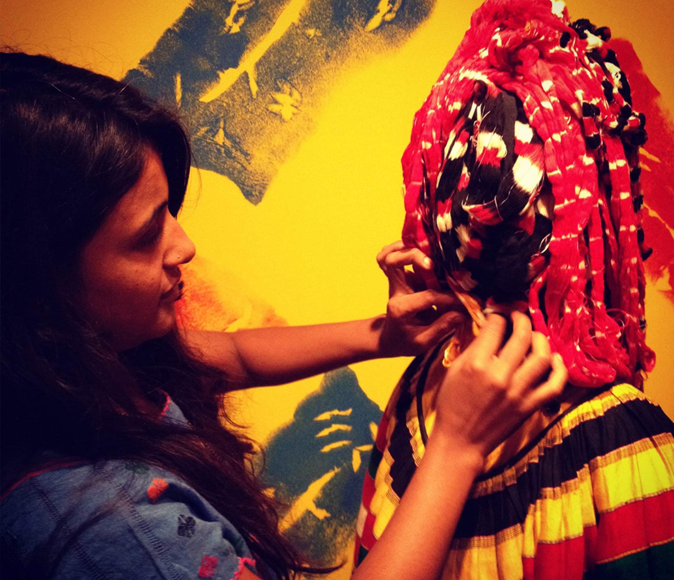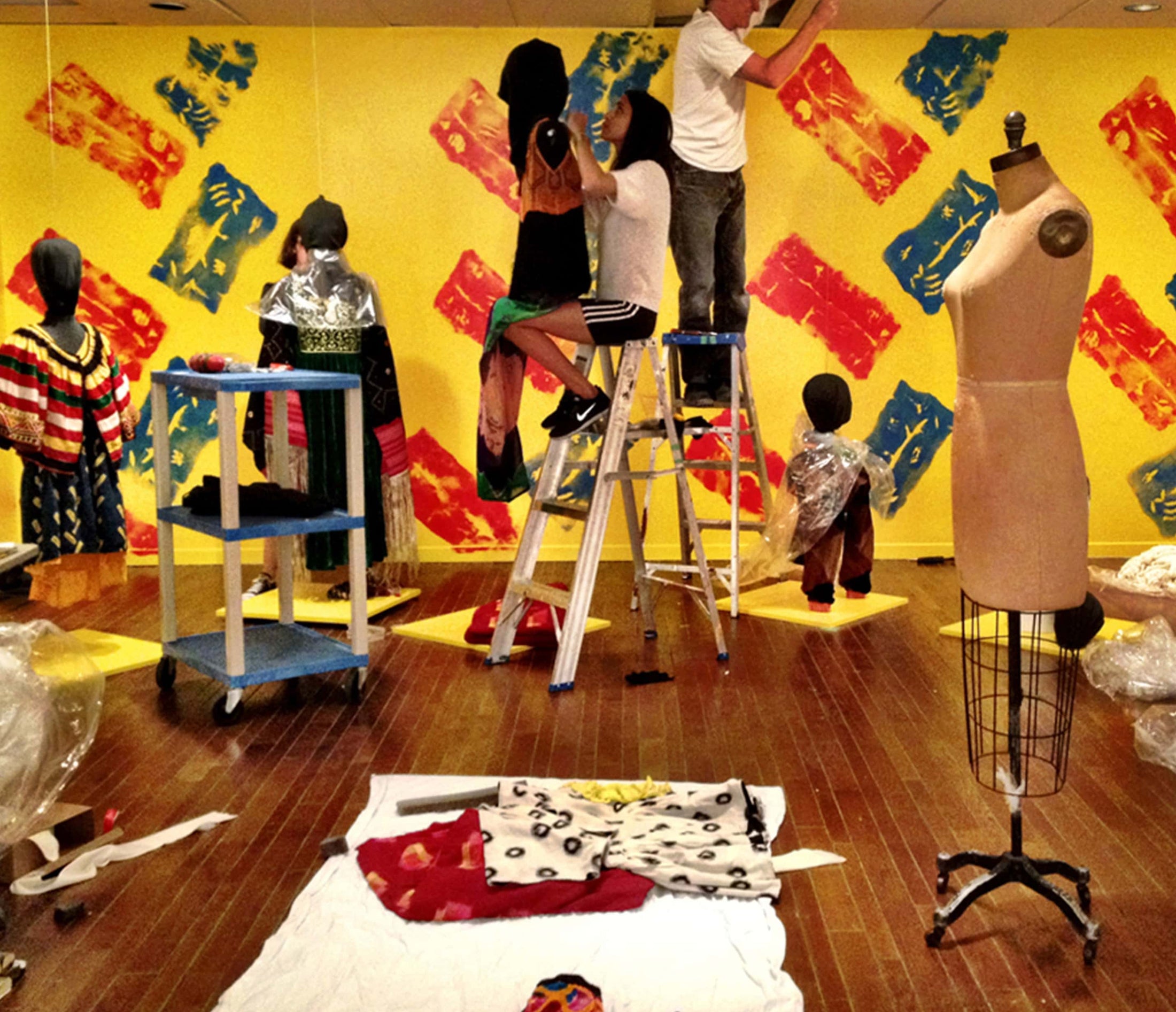 Offerings of sneak peeks into all the wonders of our world through an installation at the Textile Museum of Canada. We transformed the white-walled museum space with some NBNW colour chaos by painting the walls with our signature bright colours, stencilling our bandhani print all over, and finally displaying images and an array of pieces that captured the diverse range of our work.