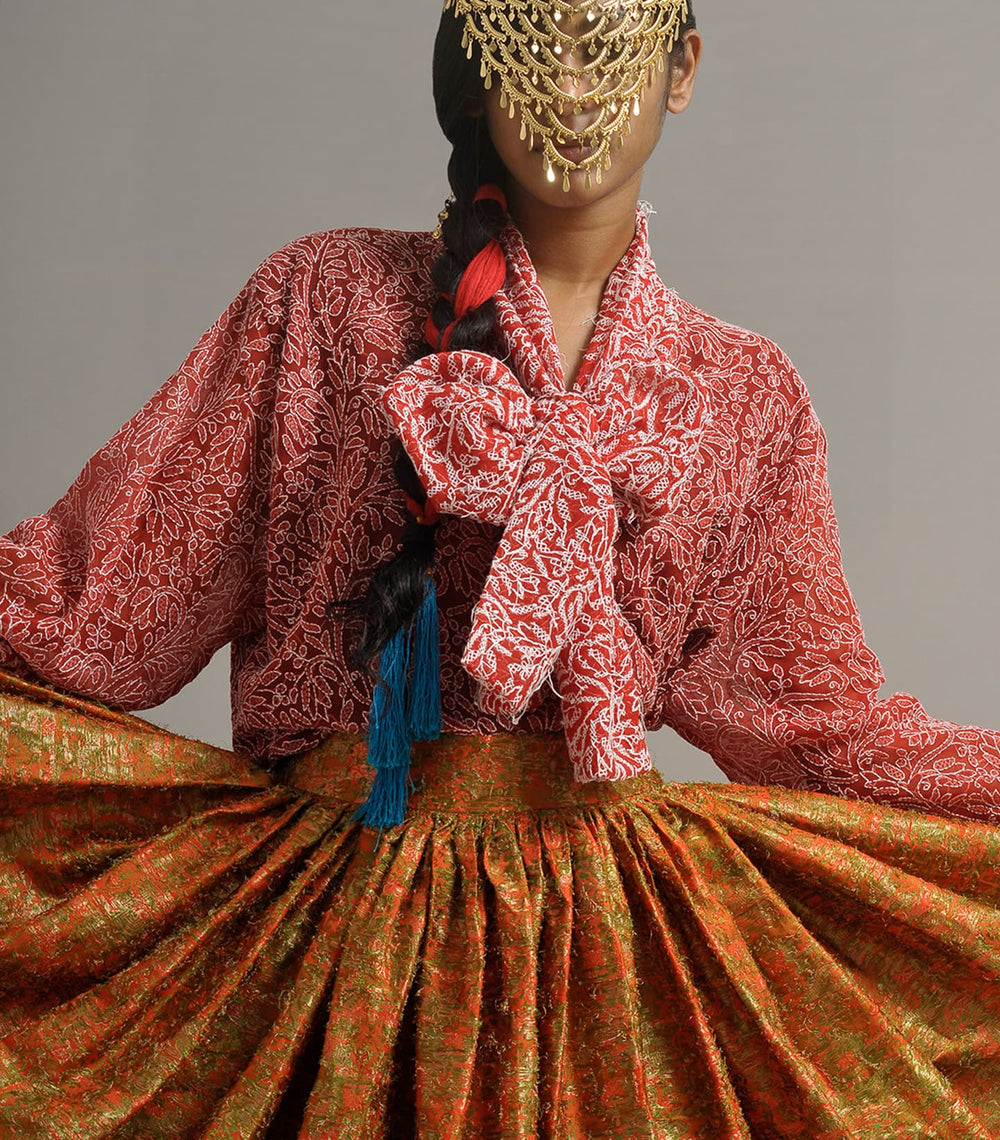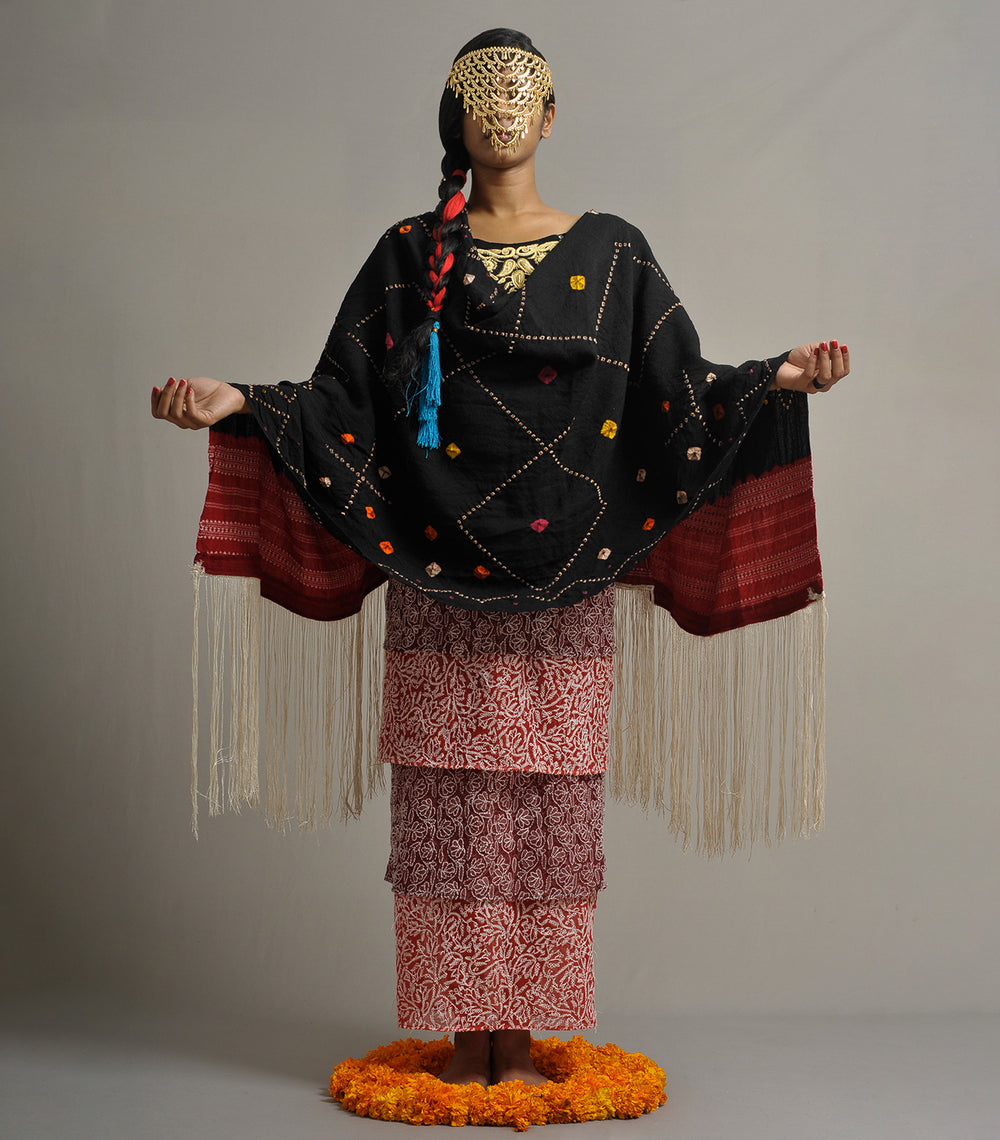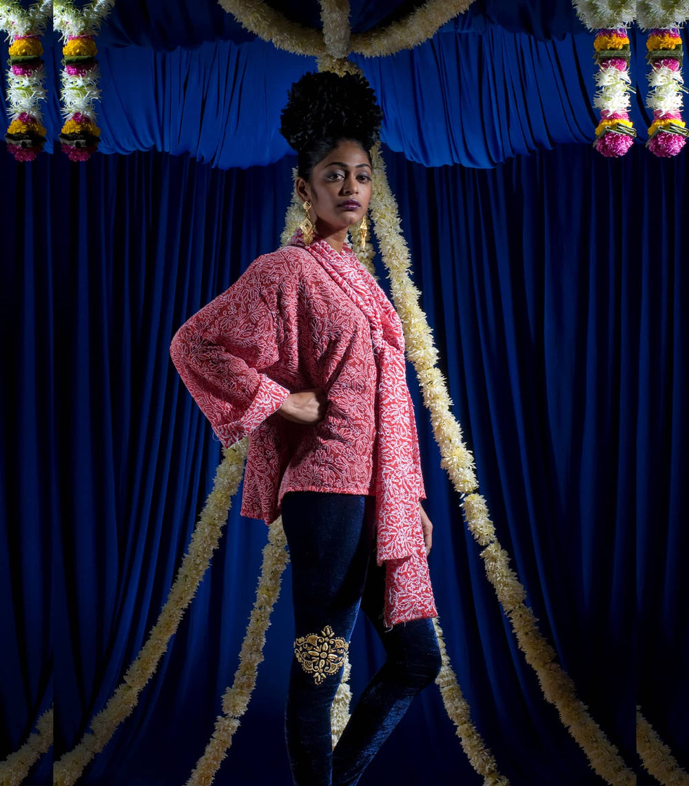 We pulled inspiration from the shaadi garlands and created our own mandap and styled it with finds from our travels, to working with market finds to create various headpieces and jewellery. This collection was a mash up of handwoven brocades, zardozi work and chikan embroidery to bring our vision to life.