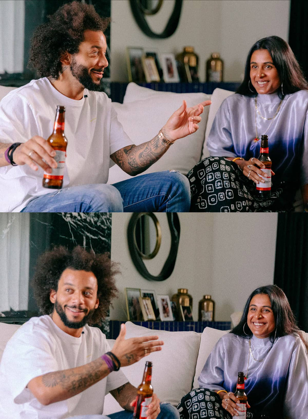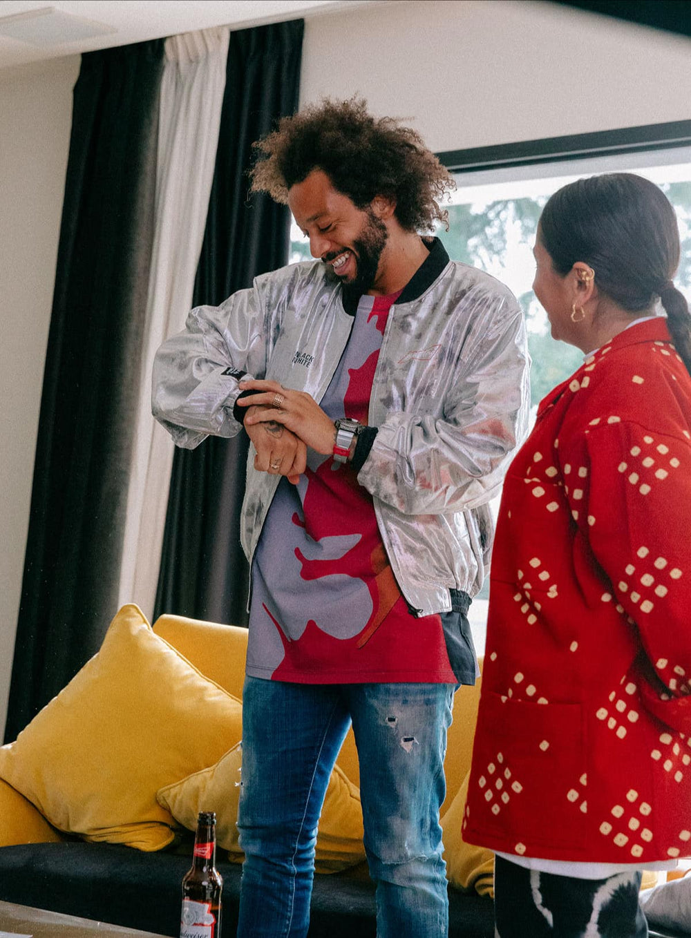 In the second #KingsCollabs collaboration by Budweiser, Brazilian football icon, Marcelo, linked up with us to discover culture crossovers in fashion & football, so we could produce a Limited Edition fashion statement. Marcelo's humbling story and spirit fueled our designs dedicated to Number 12.