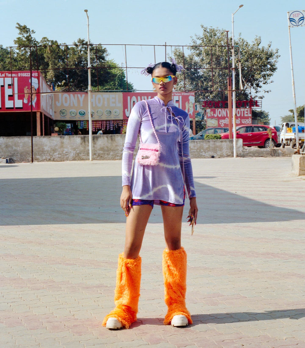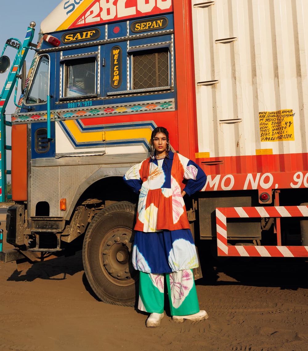This lookbook is dedicated to the Sci-Fi Space Queens who take care of only the most serious business. Shot on the highways of Delhi, with one of our all time favourite photographers, Dolly Devi, we took to the dusty roads to honour our reverence for blade runner, Sporty Spice and motel room dramatique. Peeling back the layers of the mysterious stories that envelop the trucks, gas stations and roadside vibes, we had an incredible time creating so much epic style with this superstar team.